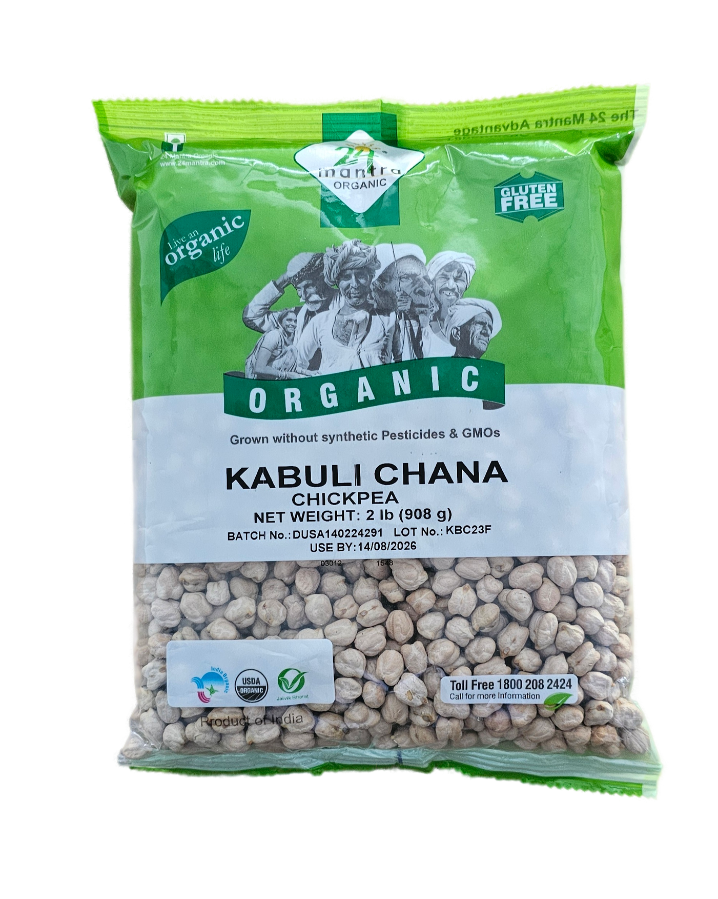Nourish your body with 24 Mantra Organic Kabuli Chana 2Lb, packed with protein and fiber.