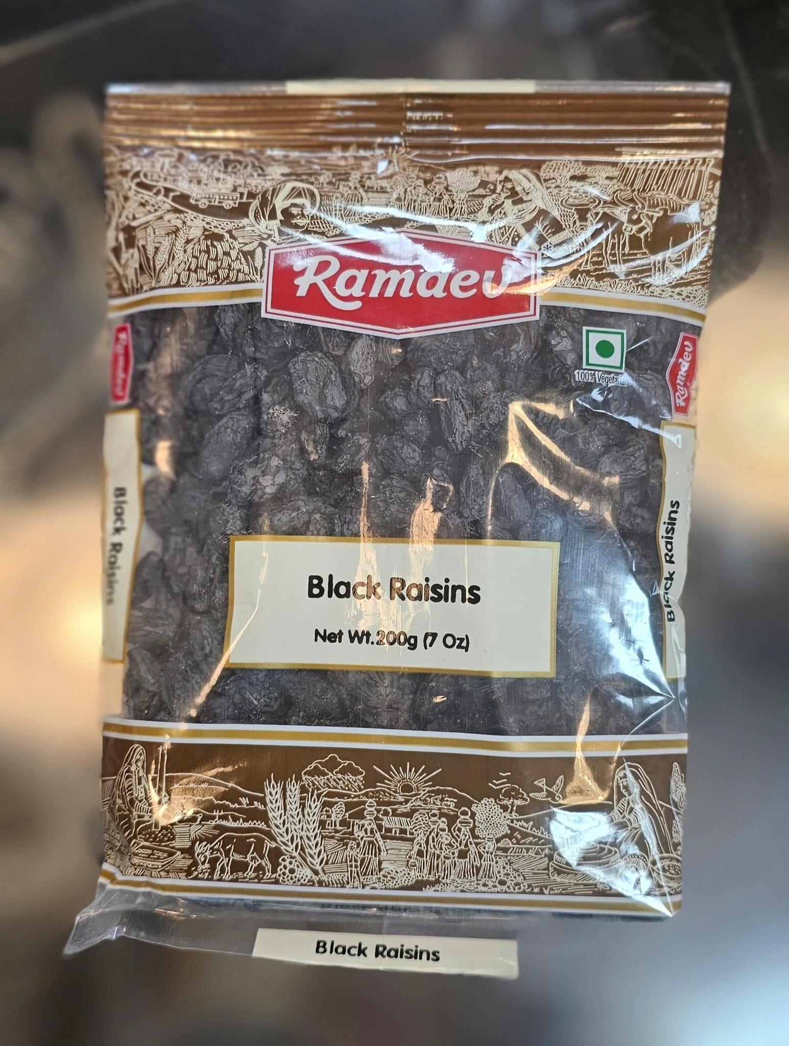 Experience the health benefits and rich taste of Ramdev black raisins/currants. Available in a convenient 7oz pack, order yours online today. Perfect for snacking or baking!