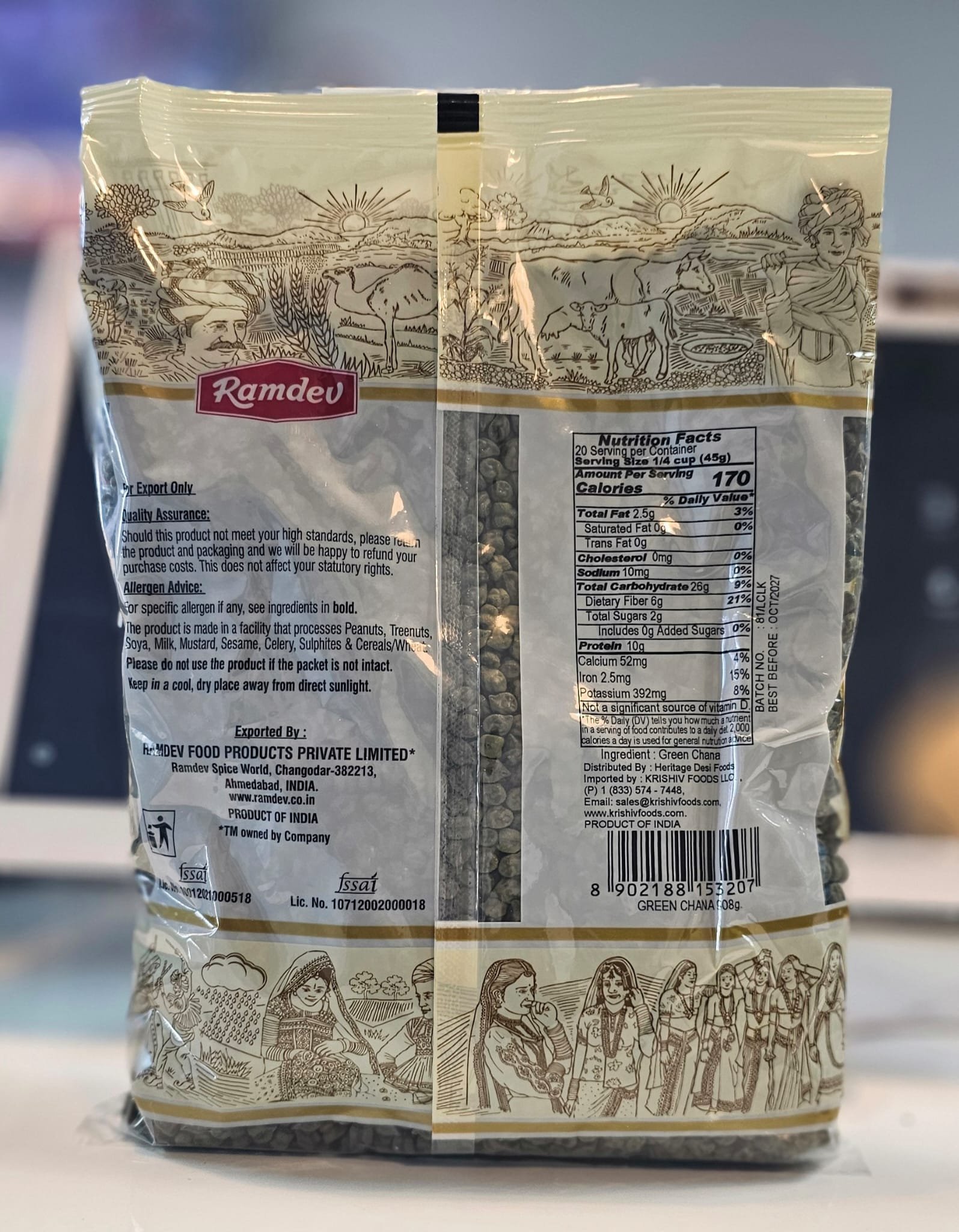 Ramdev’s Green Chana is a nutritious choice for health-conscious consumers. Packed in a 2lb bag, it ensures freshness for a long time. Ideal for a variety of dishes, enjoy its rich taste and high fiber content.