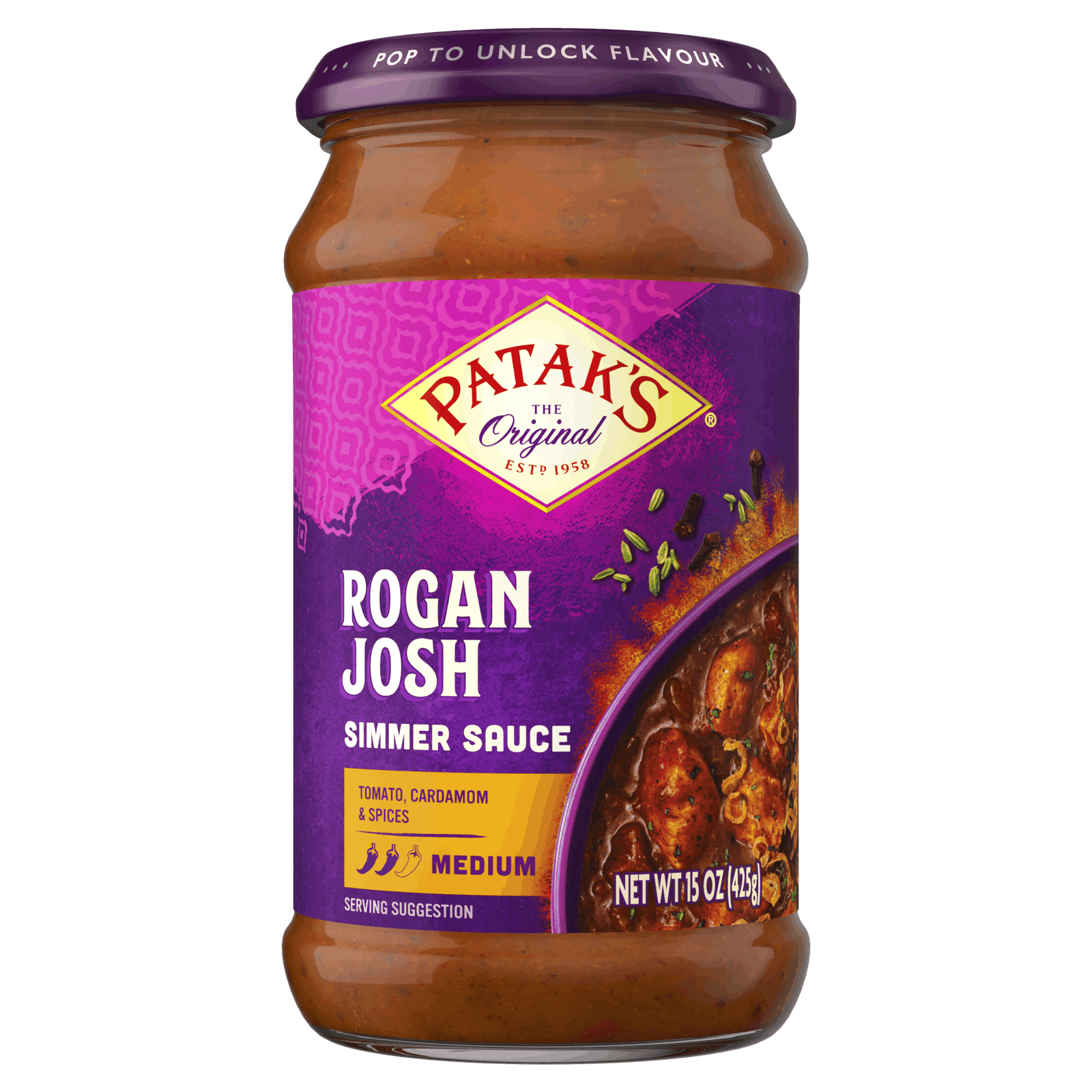 Savor the authentic flavors with Patak’s Rogan Josh Sauce (15Oz)