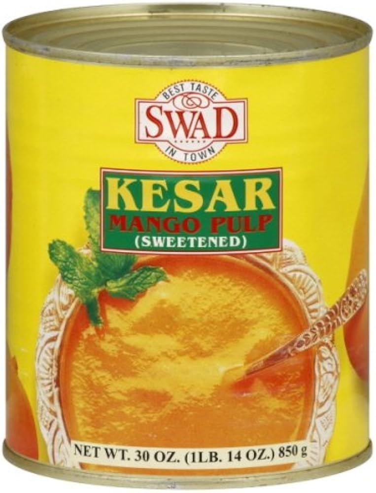 Savor the real taste of Kesar Mangoes with Swad’s 800g Mango Pulp. Perfect for desserts, beverages, or a tangy twist to your dishes. Enjoy the richness of 100% natural and authentic mango pulp anytime, anywhere.