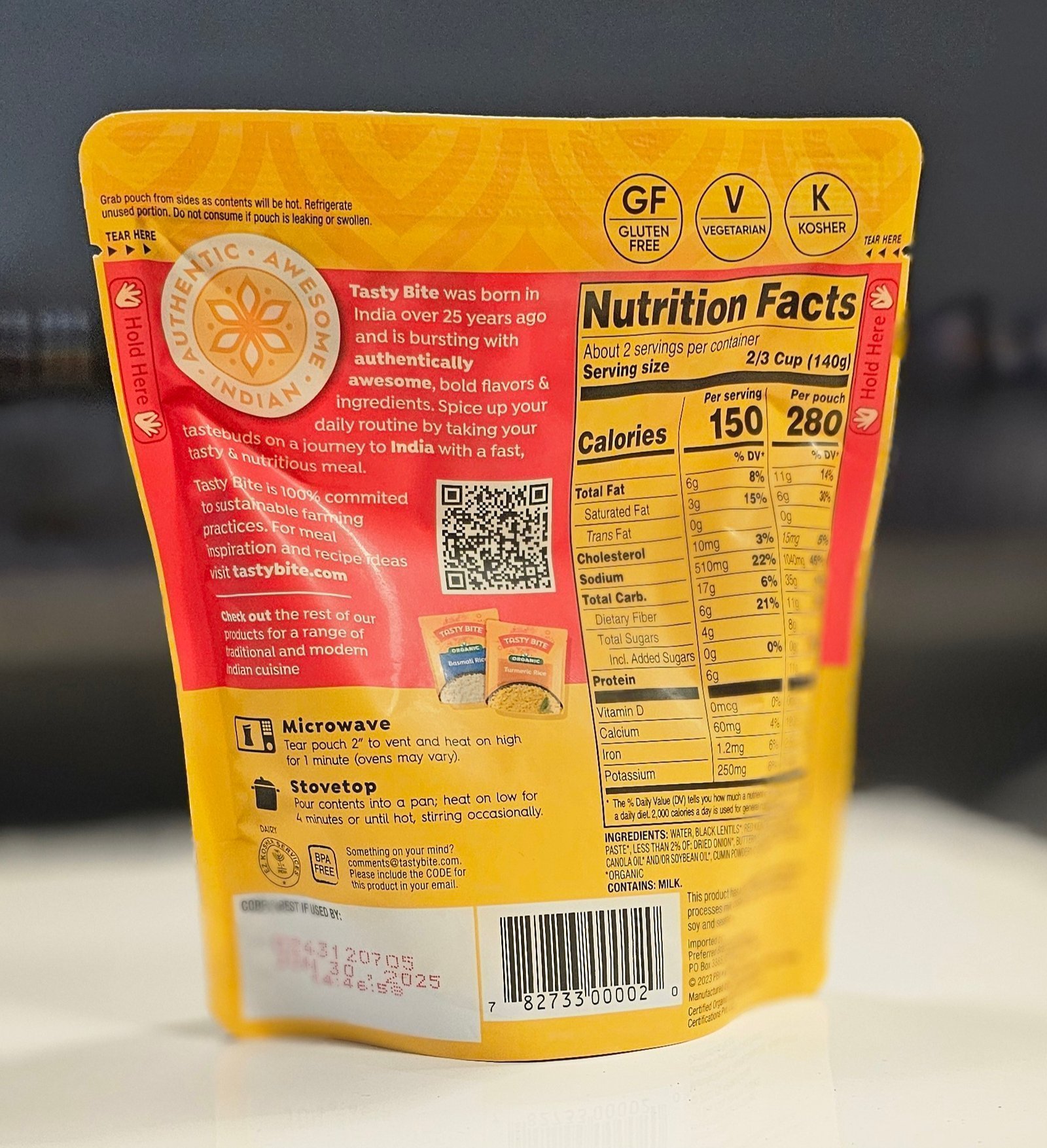 Enjoy authentic Indian flavors with Tasty Bite Organic Madras Lentils.