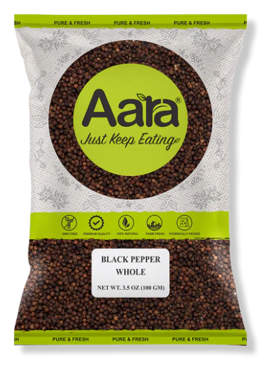 Enhance your meals with Aara Black Pepper, 100 GM – packed with flavor and health benefits!