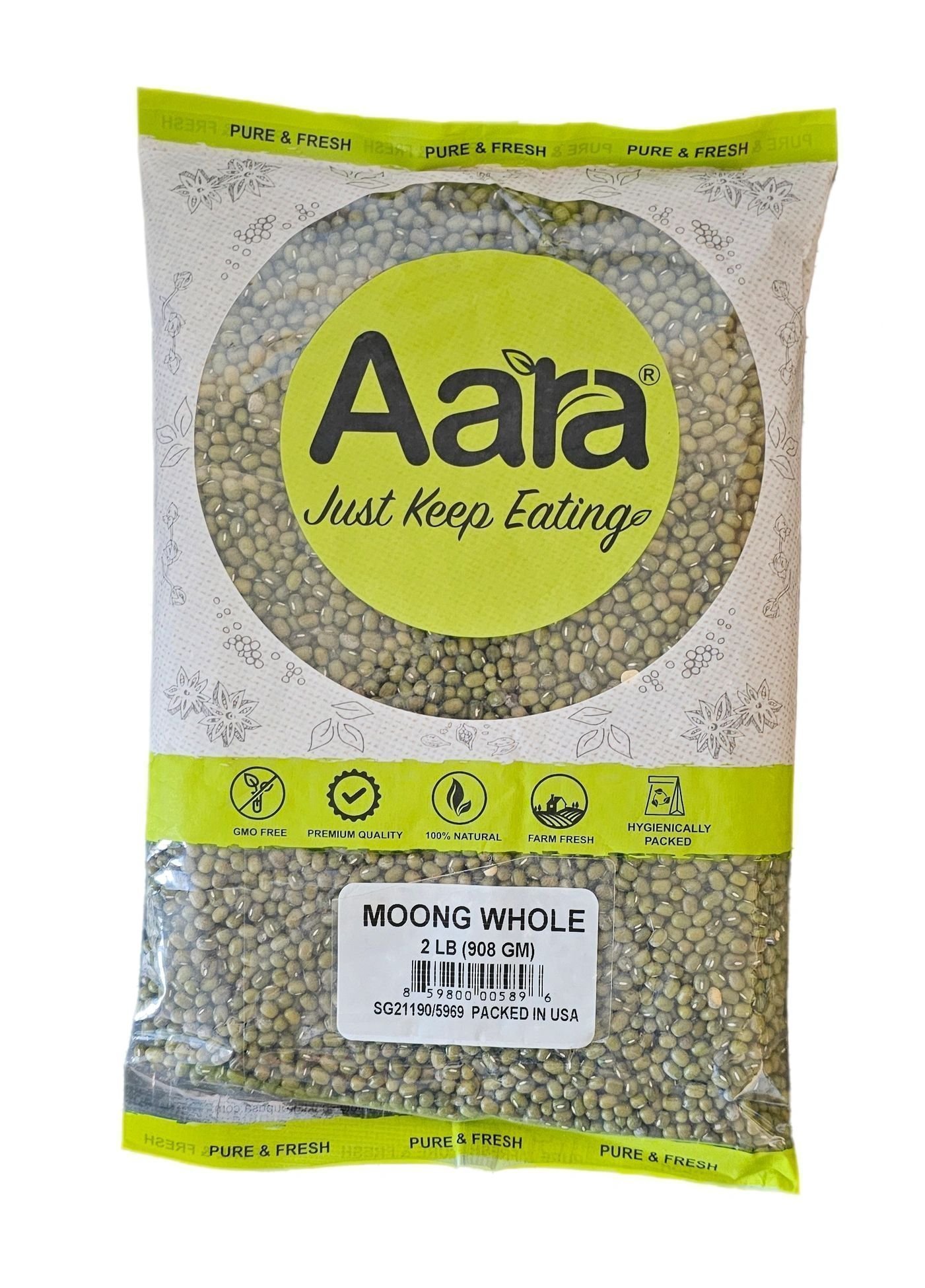 Enhance your meals with Aara Moong Whole 2 Lb, a rich source of protein and fiber.
