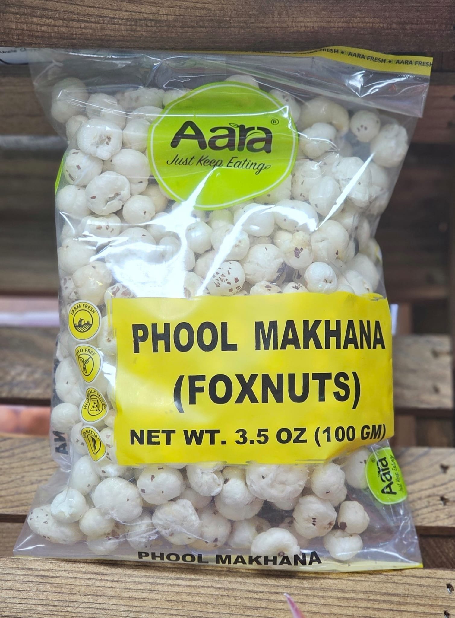 Enjoy Aara’s Phool Makhana, a 100gm pack of nutritious lotus seeds.