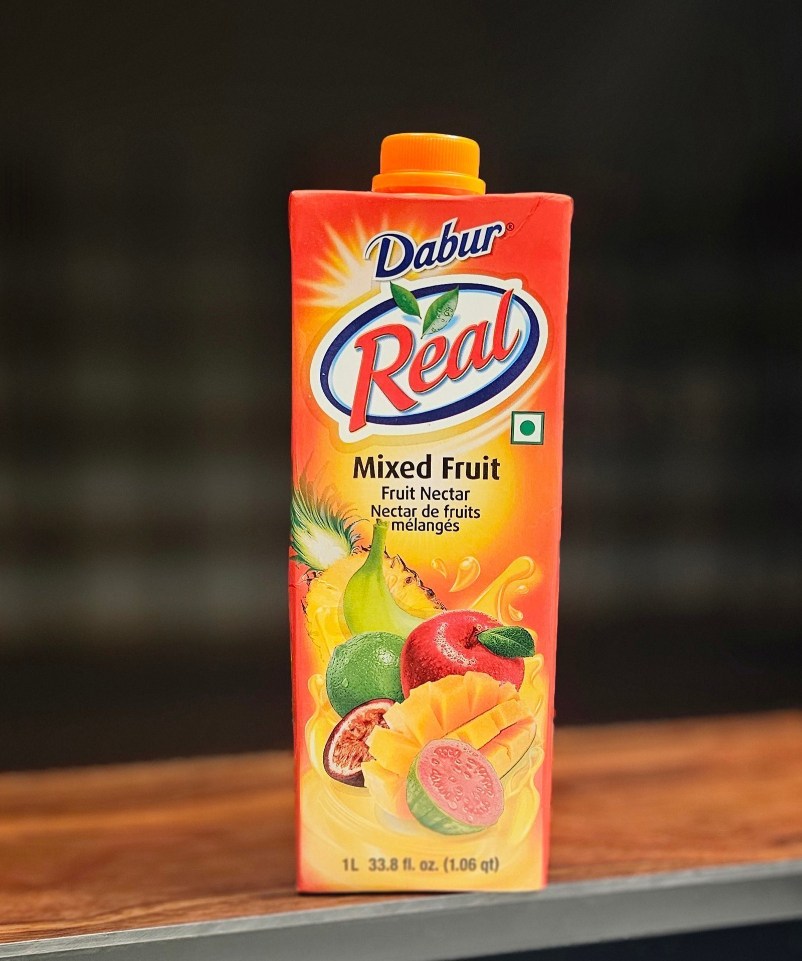 Enjoy the healthful blend of Dabur Real Mixed Fruit Juice, packed in a 1-litre bottle.