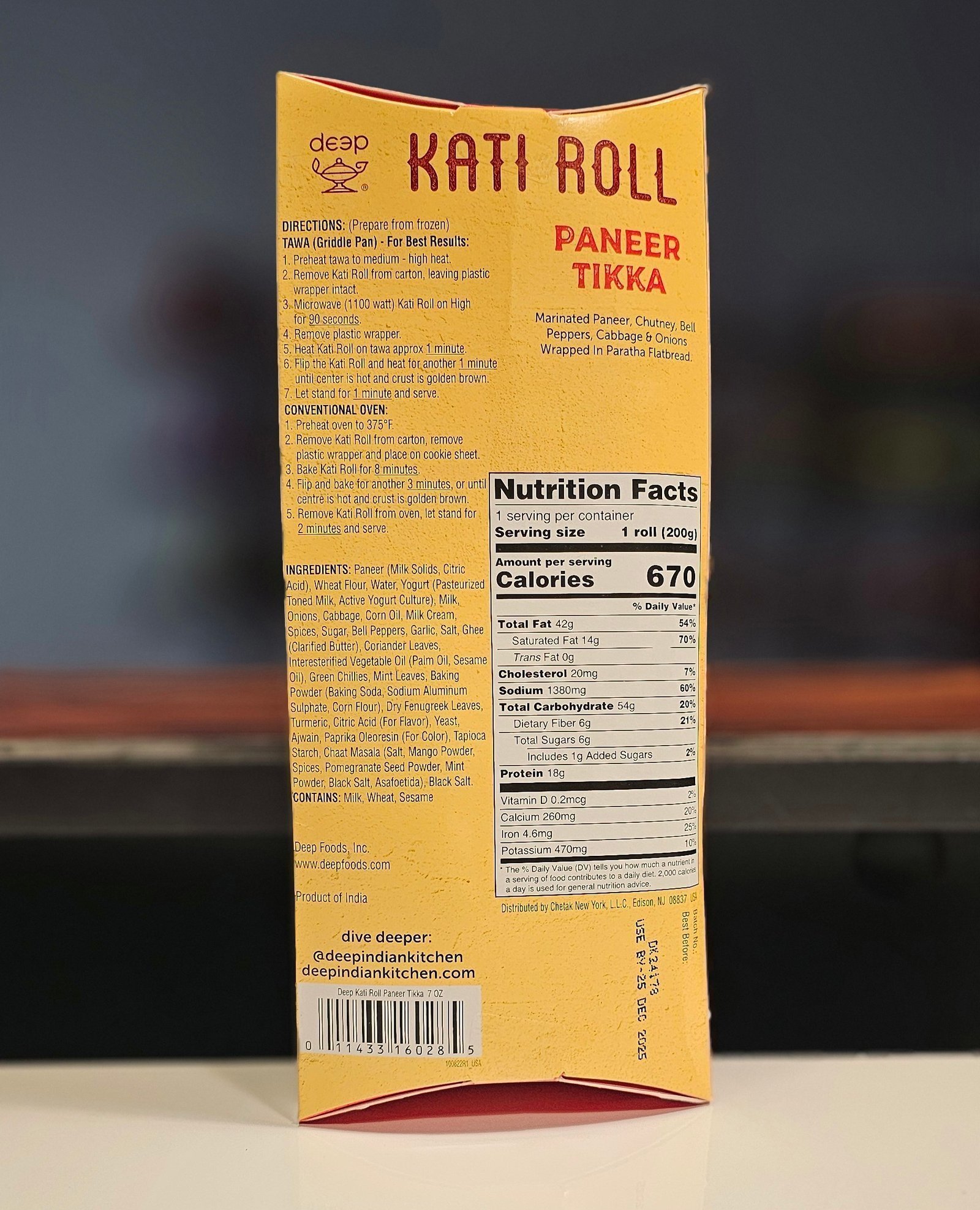 Experience the burst of flavor in each bite of our Deep Kati Roll Paneer Tikka. This 200g roll, filled with succulent paneer tikka, is a perfect choice for the lovers of Vegetarian Indian Cuisine. Order online now to indulge in its satisfying taste.