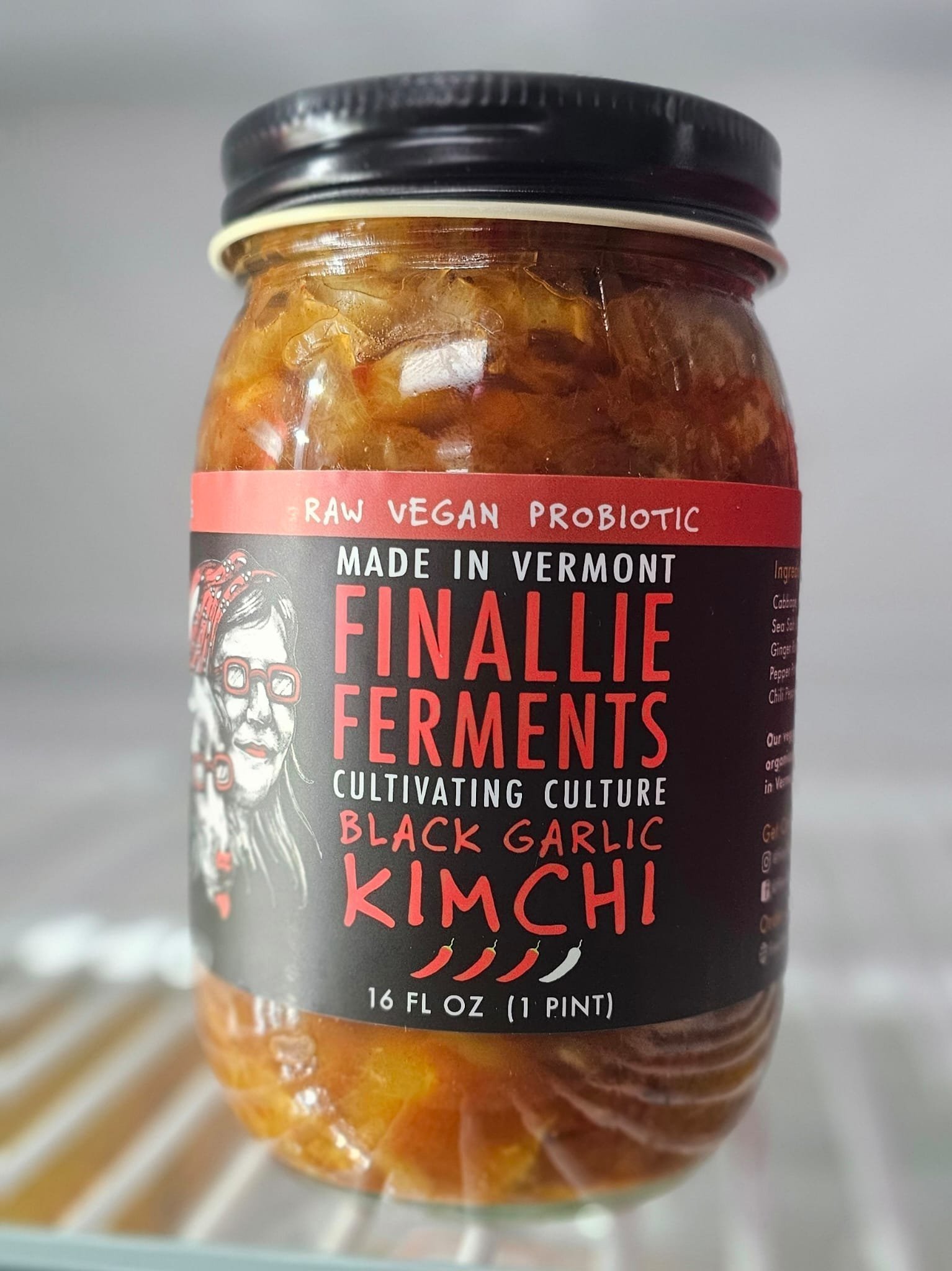 Savor the unique taste of Finallie Ferments Black Garlic Kimchi.