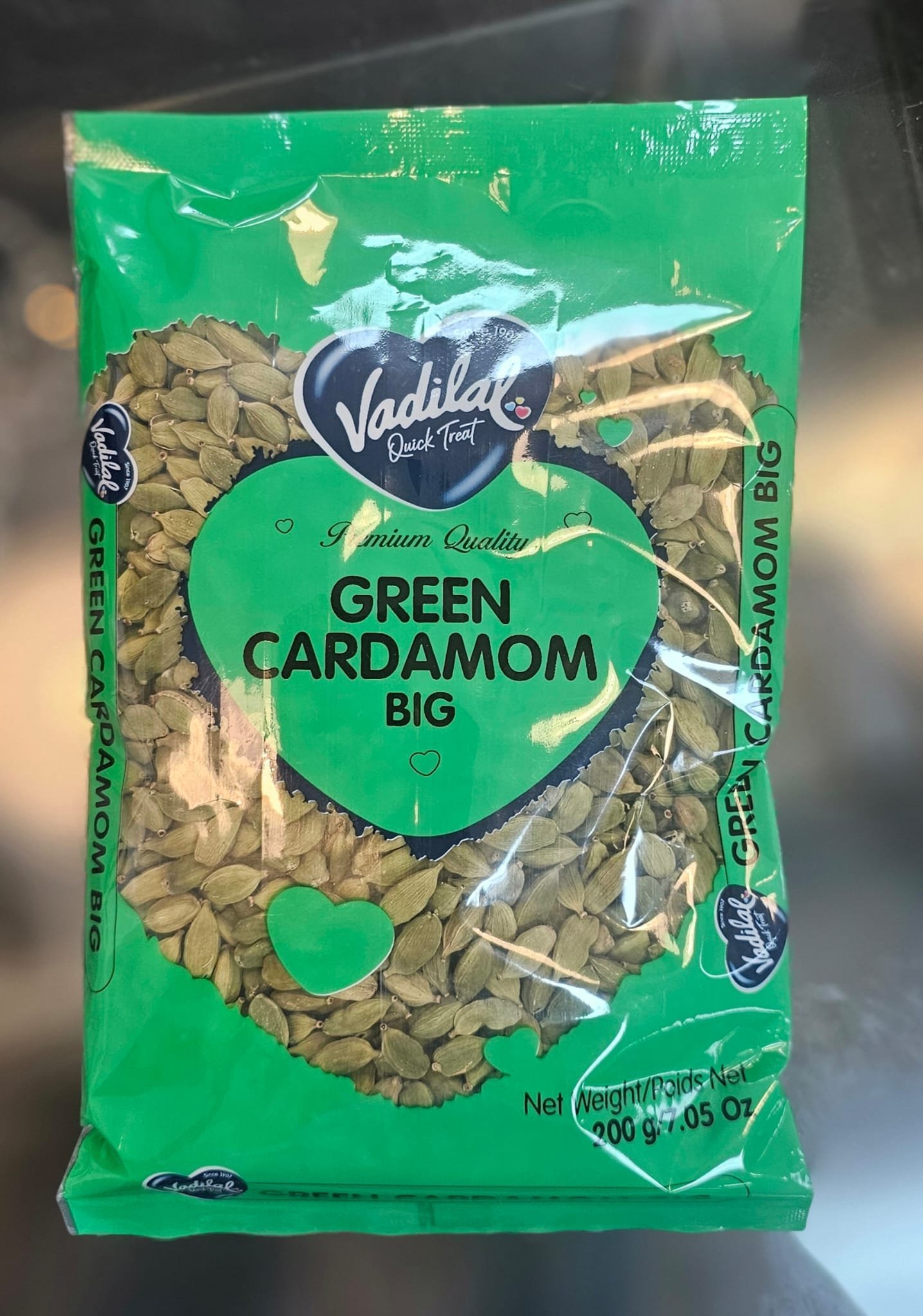 Premium quality Vadilal Green Cardamom Seeds, 200g pack.