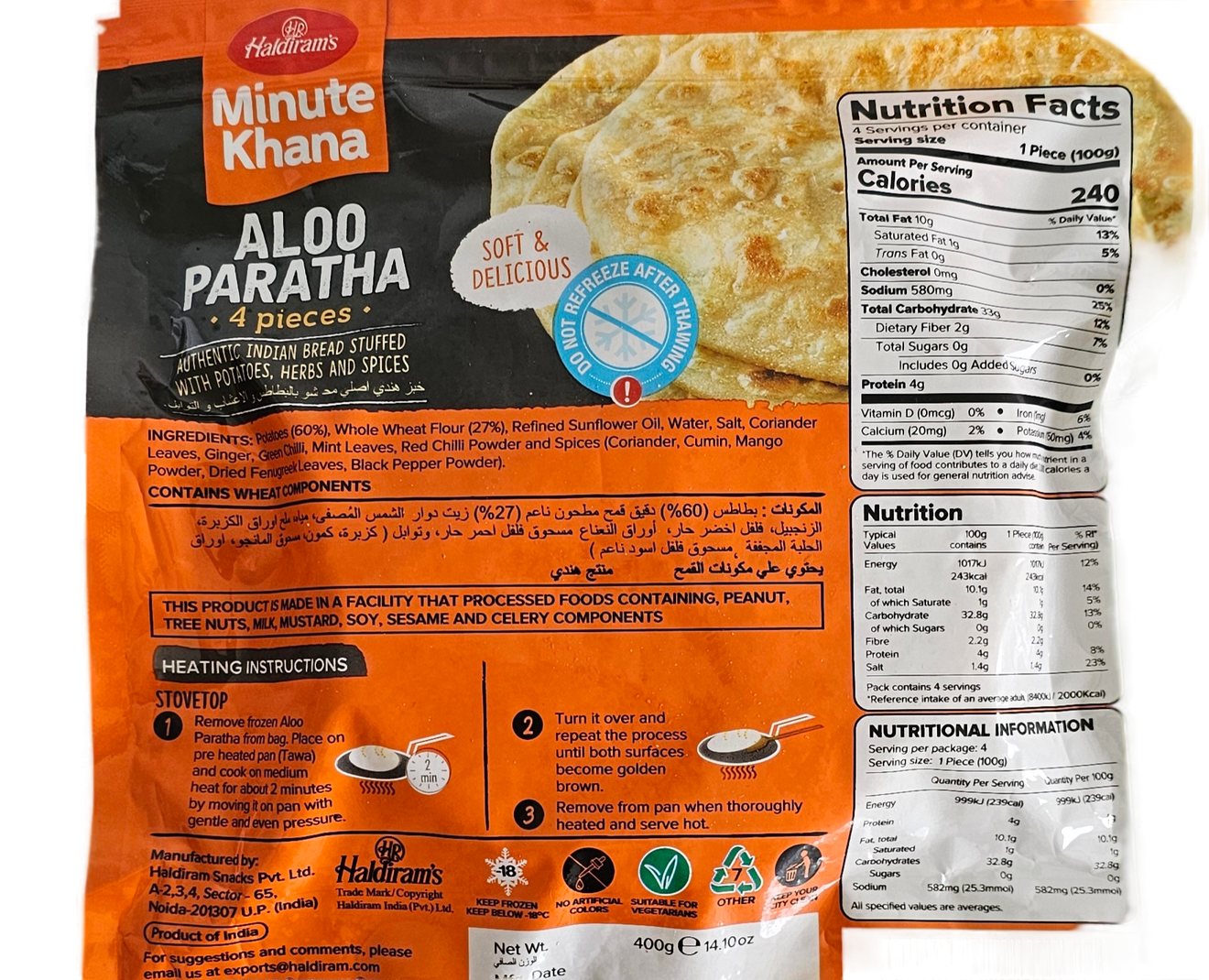 Savor the Indian taste with Haldirams Aloo Paratha, 400 Gm pack.