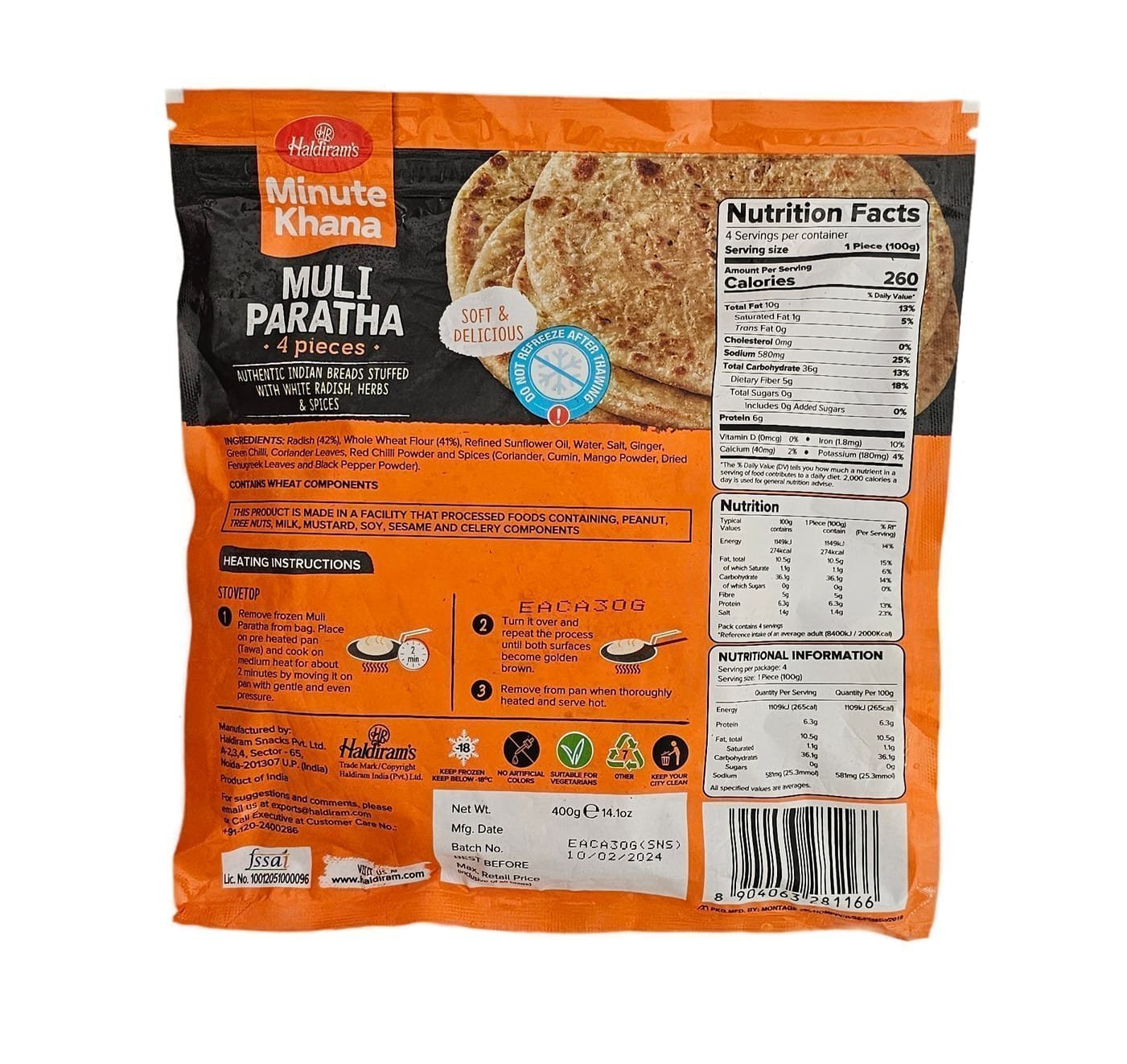 Savor authentic Indian flavors with Haldiram’s Muli Paratha 400gm.