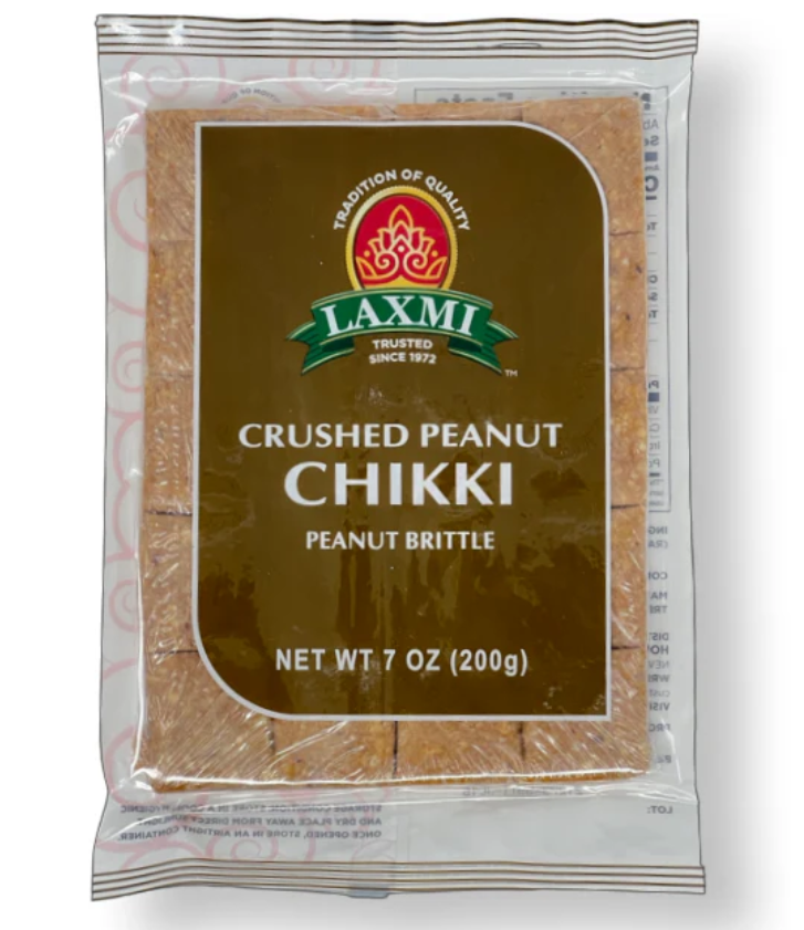 Enjoy the nutty delight of Laxmi Crushed Peanut Chikki, 7 oz pack.