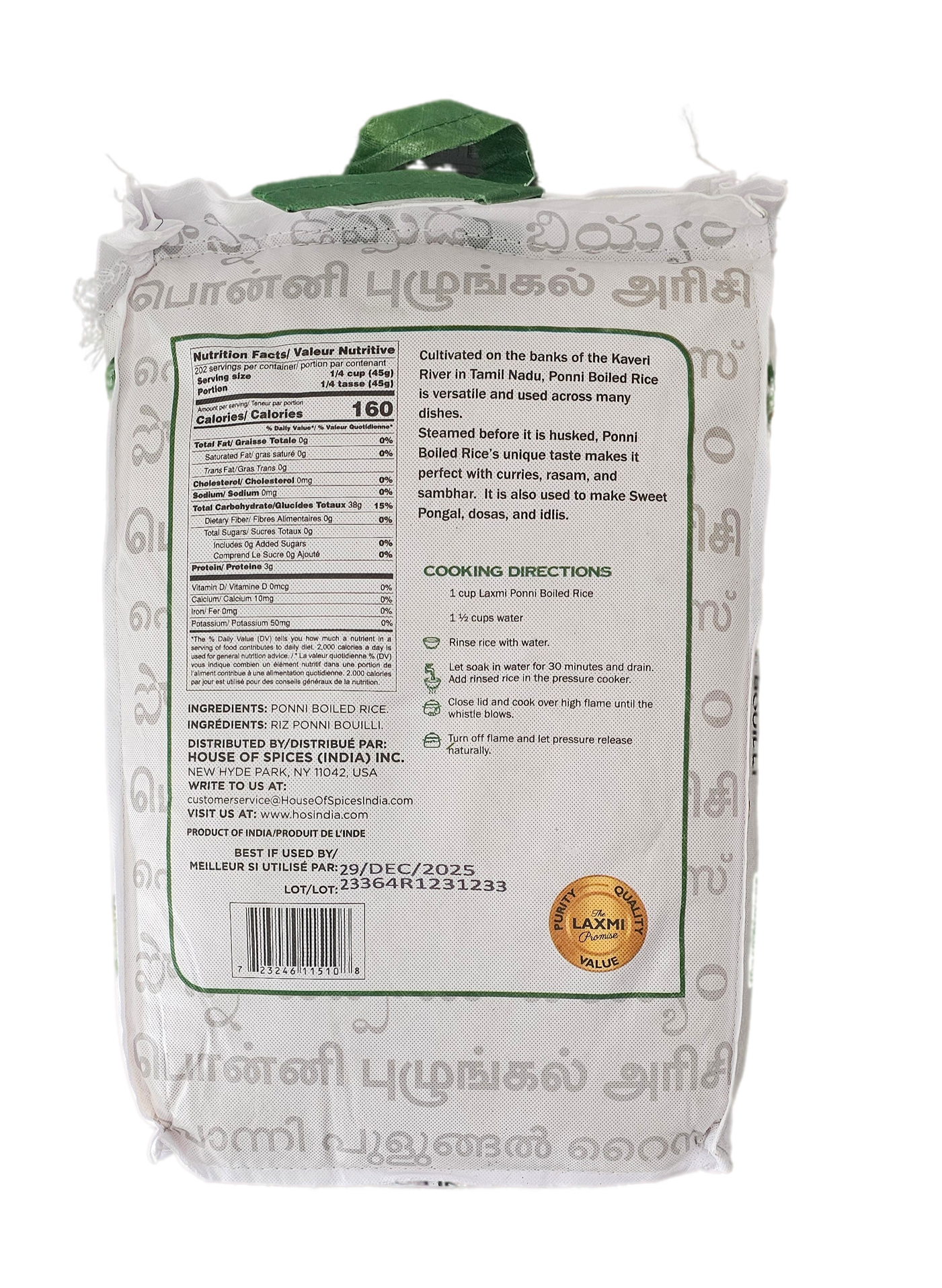 Experience the superior quality of Laxmi Ponni Boiled Rice. Ideal for daily cooking, it delivers distinct taste and texture. High in nutritional value and sourced sustainably, it’s your perfect choice for healthy, delicious meals.