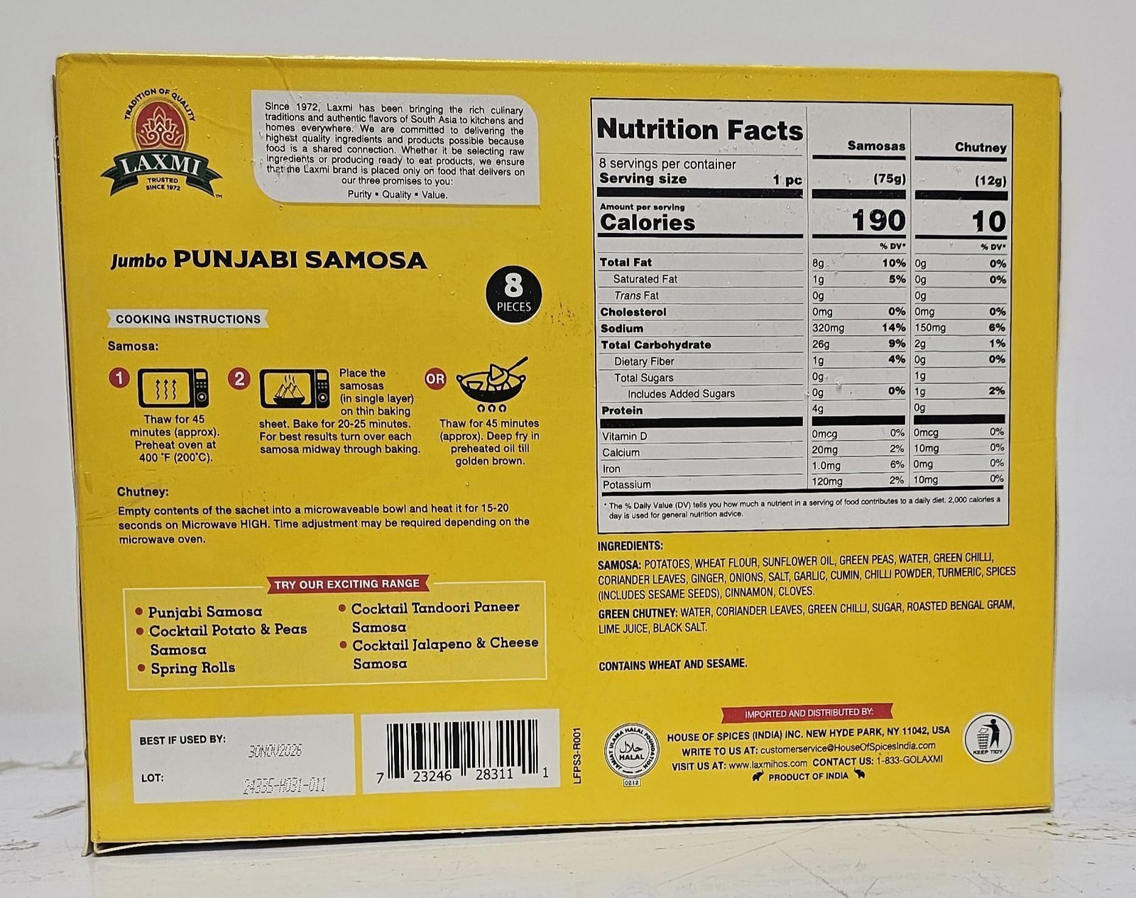 Relish the true essence of Indian cuisine with Laxmi’s Punjabi Jumbo Samosas. Made from premium ingredients, this pack of 8 offers a delicious, spicy filling wrapped in a crispy pastry. Perfect for quick snacks or party appetizers.