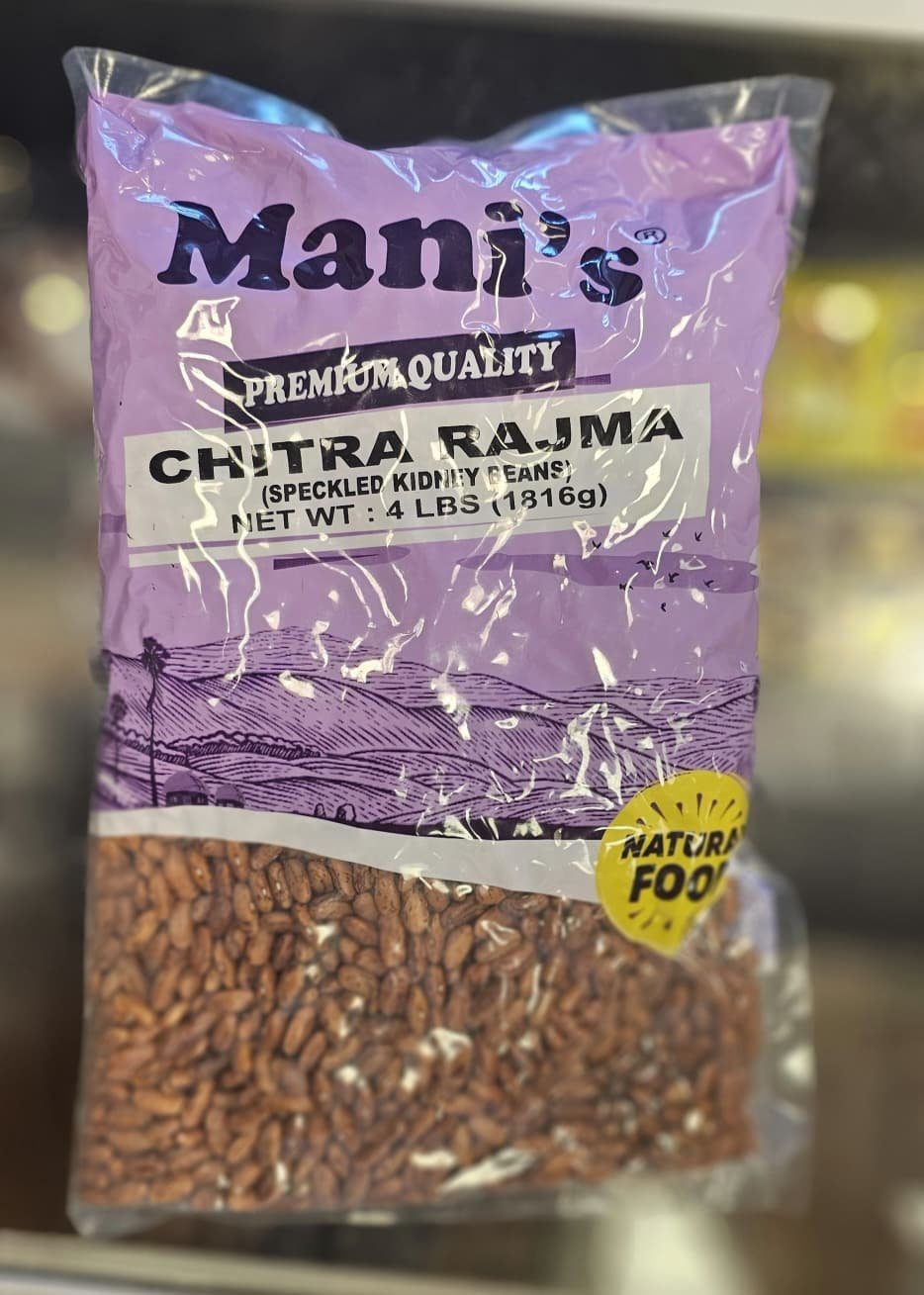 Mani’s Chitra Rajma – High-quality speckled kidney beans, 4lbs pack available online.