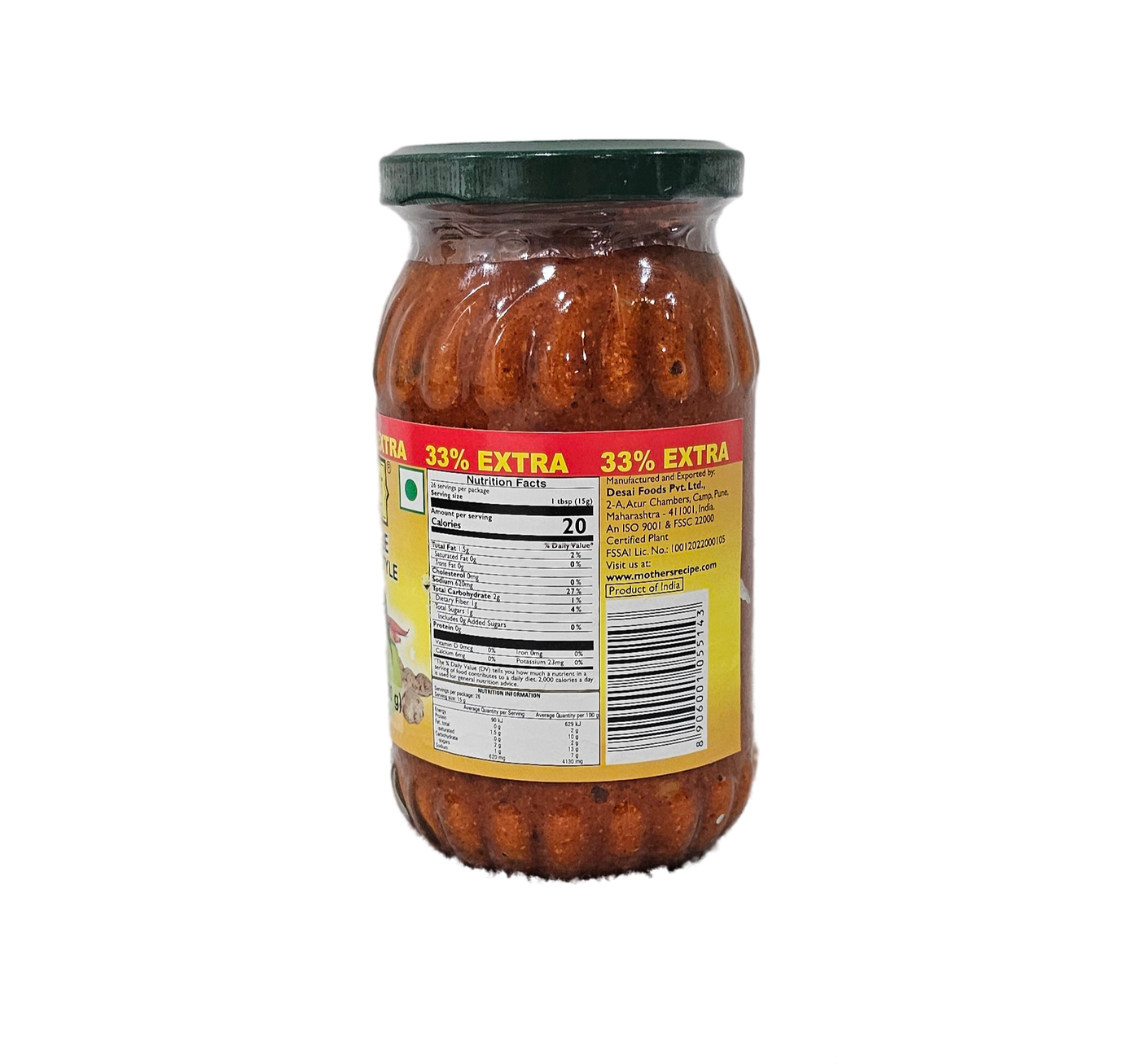 Experience the tangy burst of traditional South Indian spices in every bite of Mothers Recipe Mixed Pickle. Perfectly balanced, this 400 Gm jar of delight enhances your meals with its unique taste. Savor the flavor, savor the tradition!