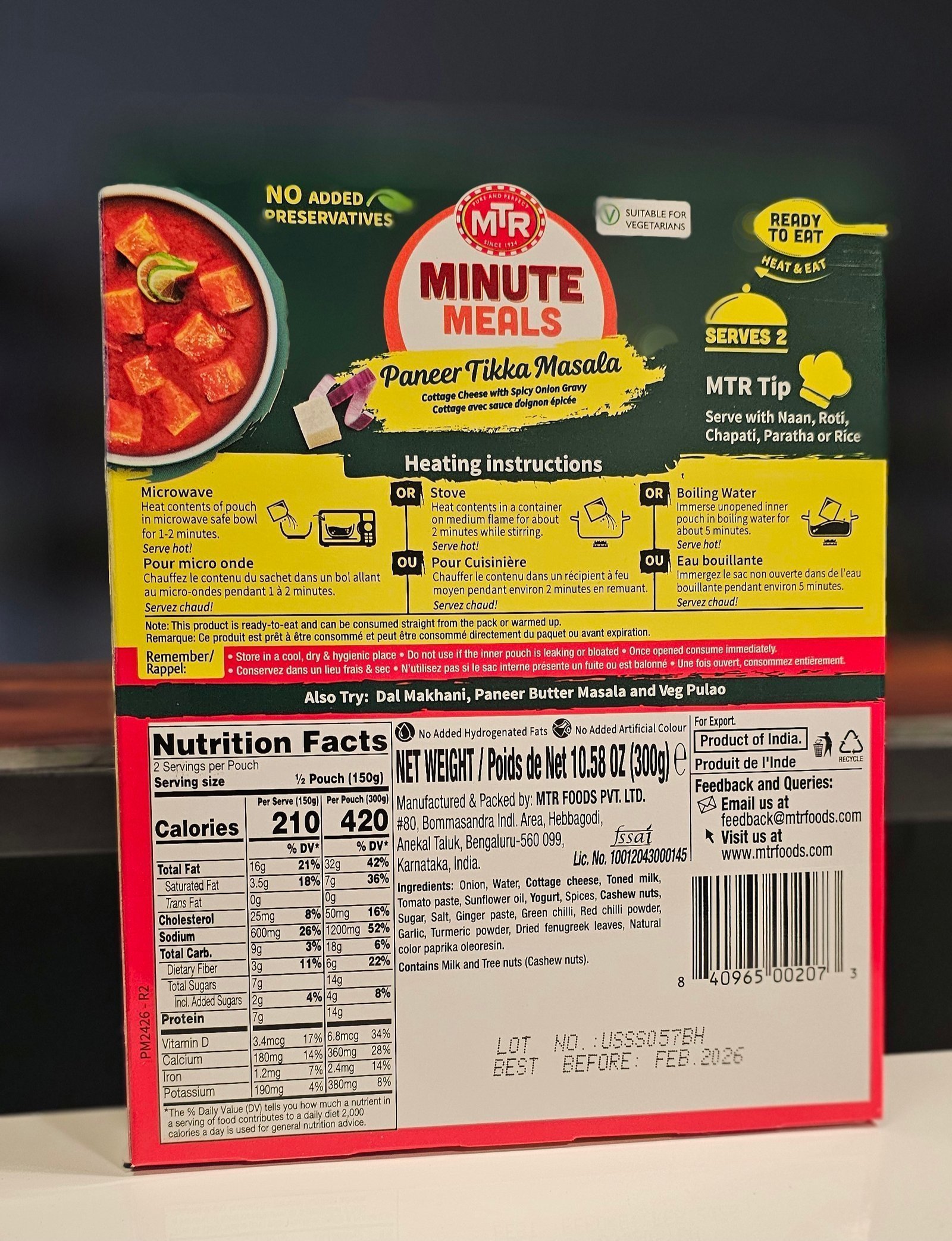 Authentic MTR Paneer Tikka Masala, 300g – a burst of Indian flavors in every bite!