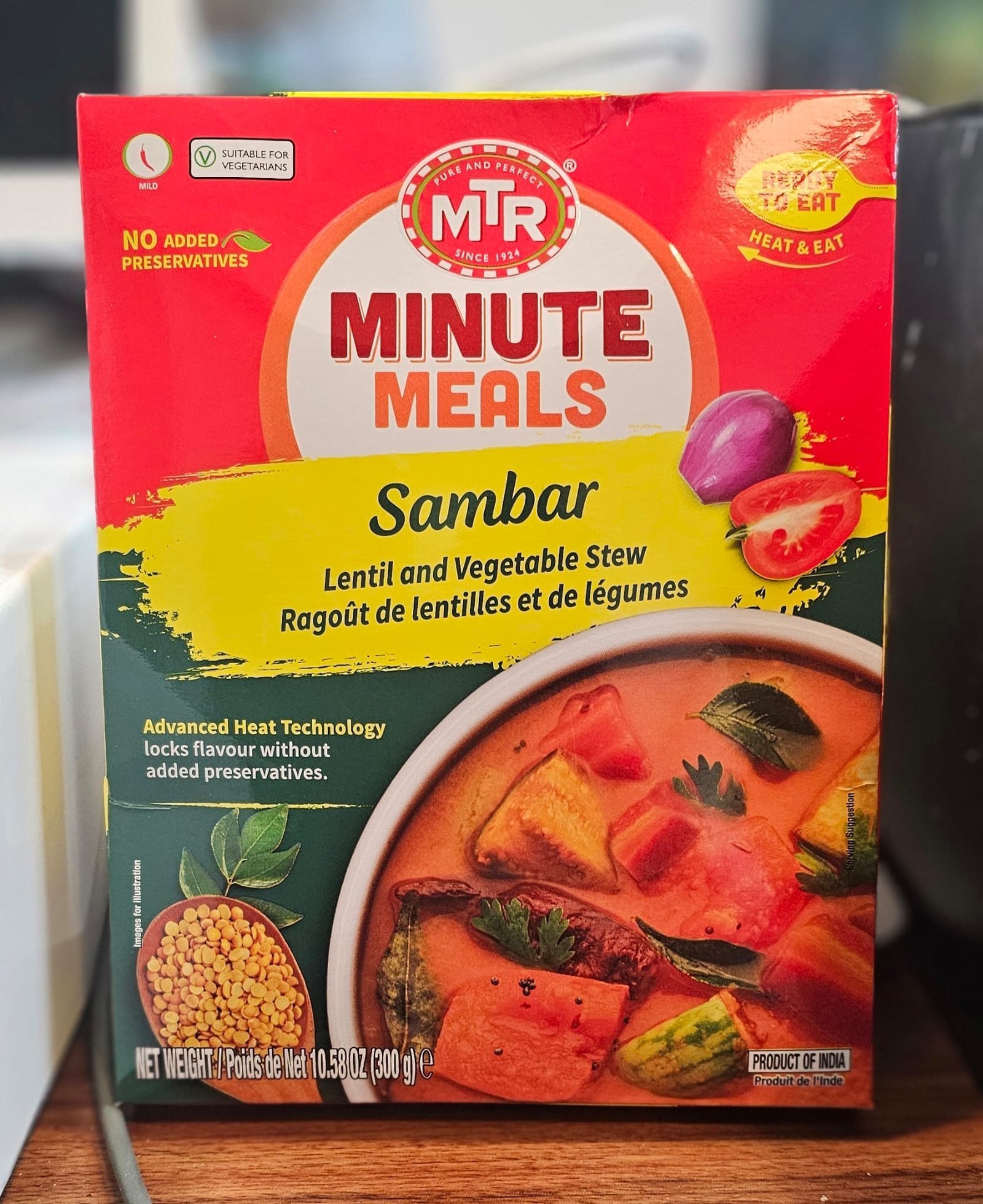 Savor the taste of South India with MTR Sambar, a 300g pack of rich, tangy lentil soup mix. Perfect with rice or as a soup, it’s easy to prepare and packed with traditional spices.