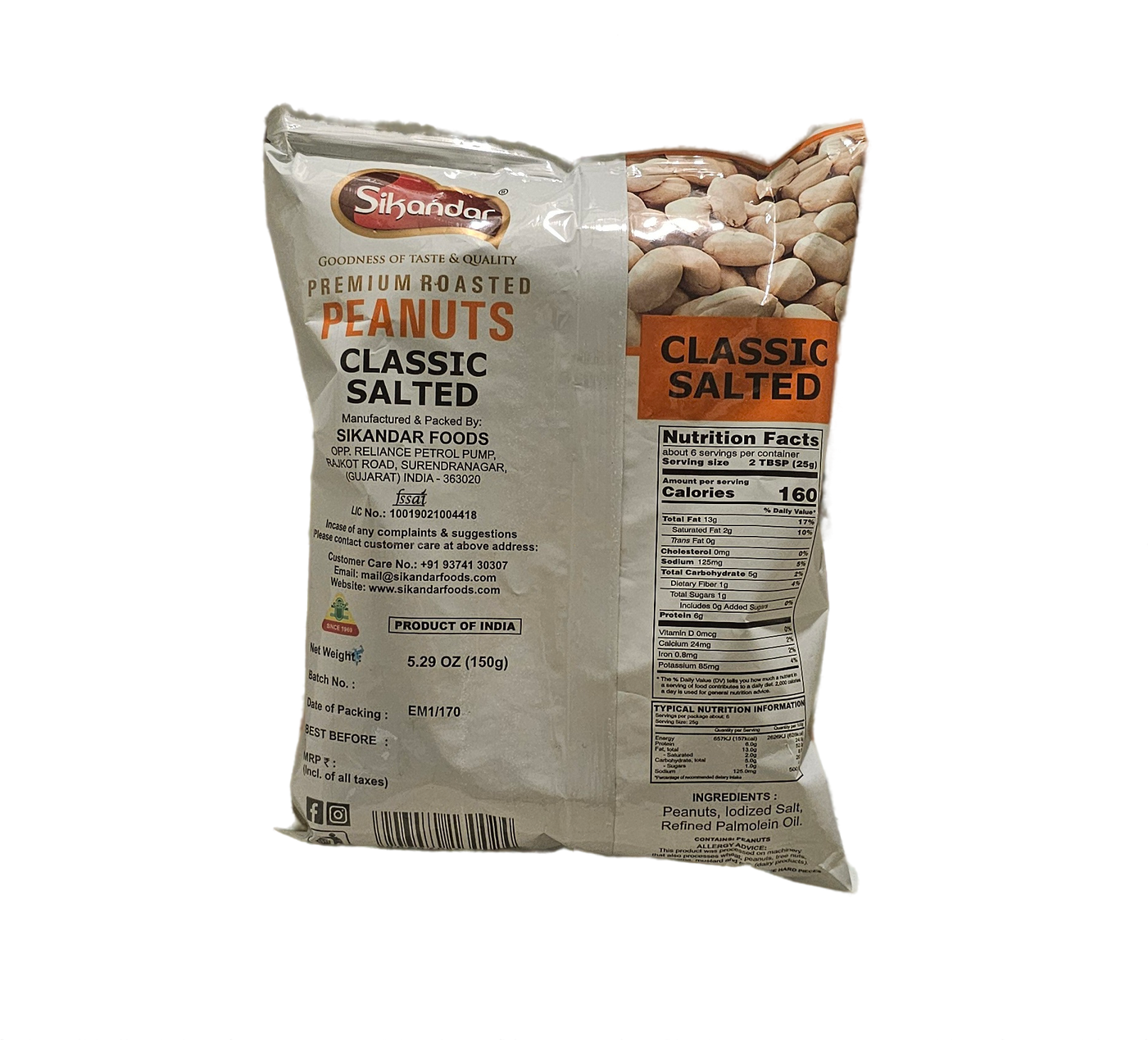 Savor the irresistible flavor of Sikandar Sing Roasted Peanuts. These high-quality peanuts are roasted to perfection, offering a crunchy texture and a delightful taste. Ideal for snacking, cooking, or topping salads. Enjoy the 150 Gm pack!