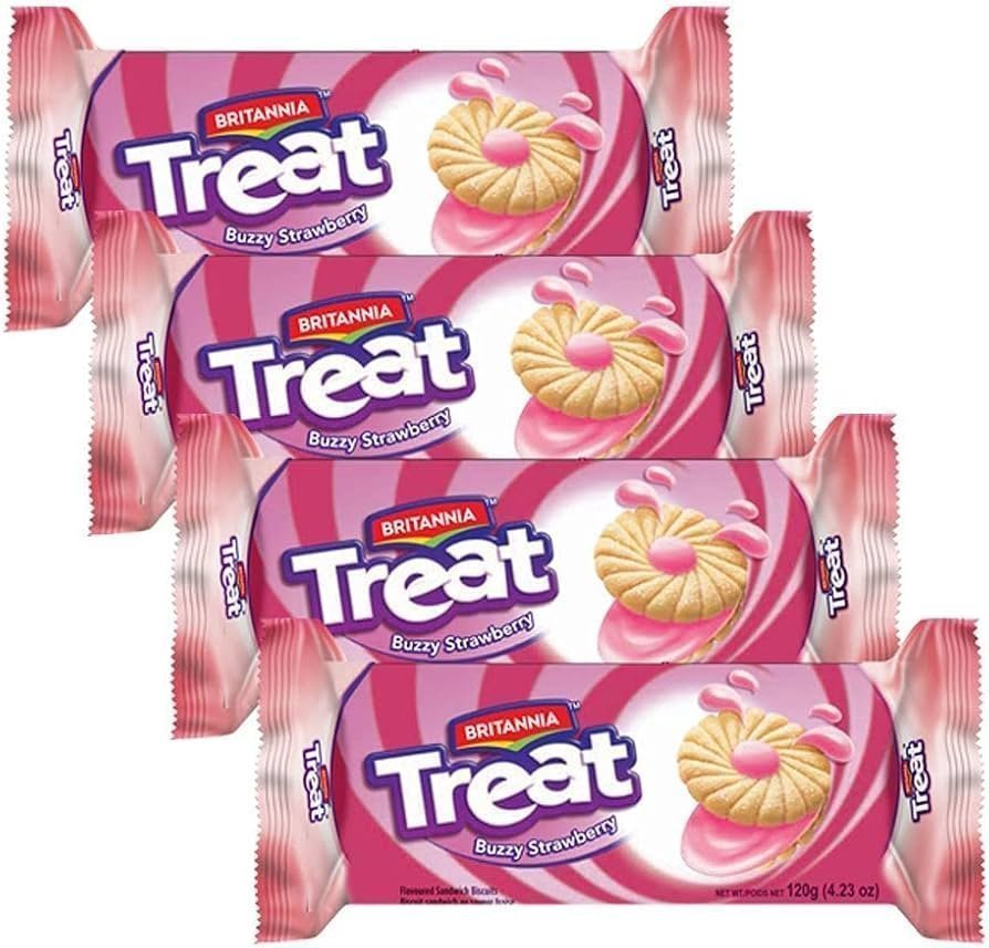 Enjoy the fruity splash of BritanniaTreat Strawberry biscuits.